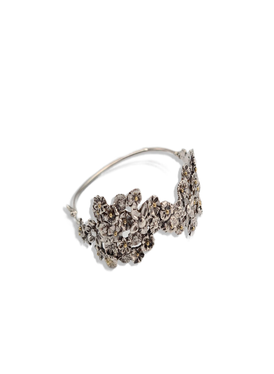 Porta la primavera sempre con te con questo bellissimo bracciale in argento e oro 18kt , in cui ogni fiore viene realizzato totalmente a mano esclusivamente per te. Questi raffinati gioielli rappresentano la rinascita e la vitalità della primavera.