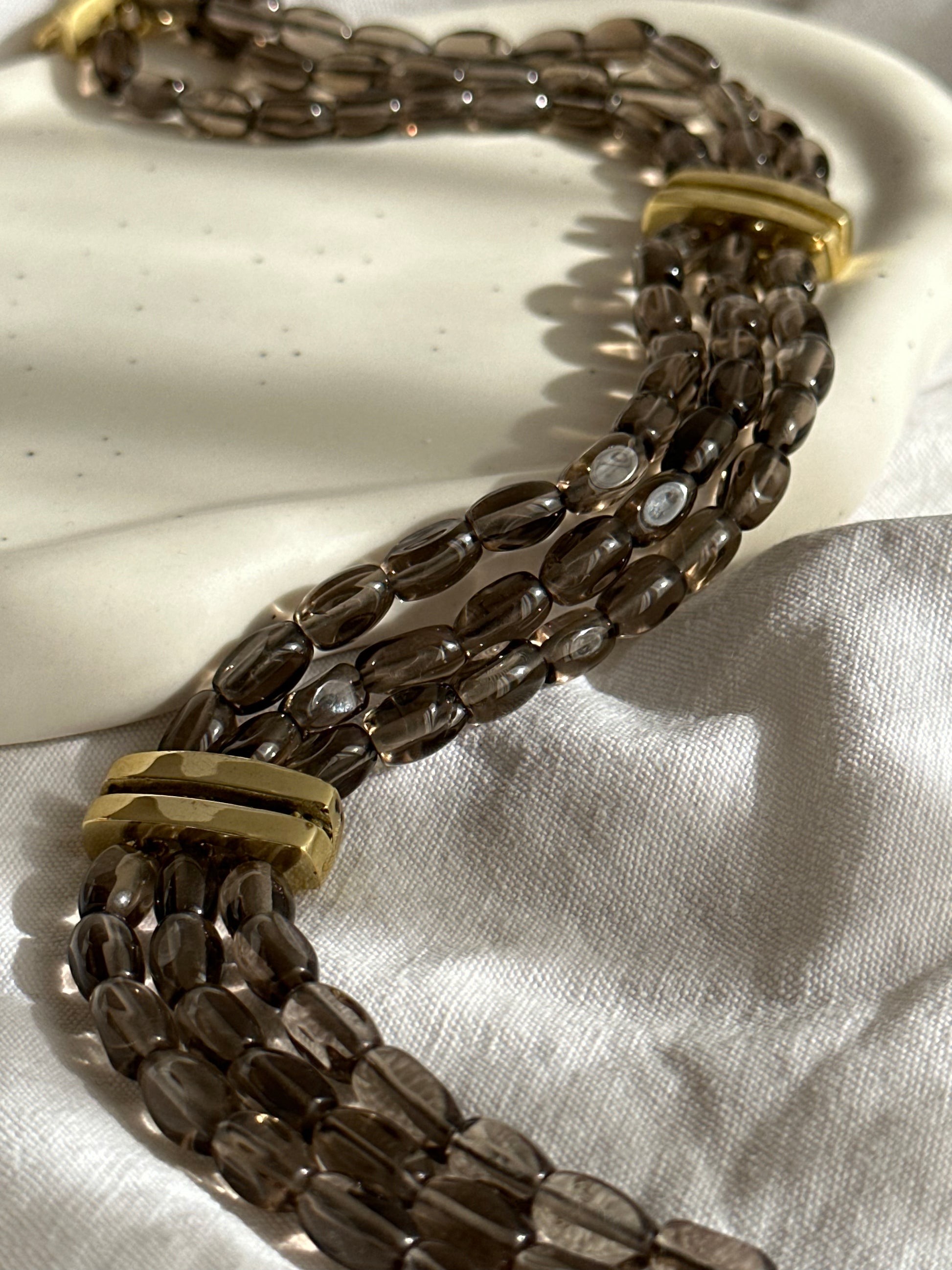 I fili di pietre naturali creano un contrasto elegante e sofisticato, che aggiunge un tocco di colore e vivacità al look.