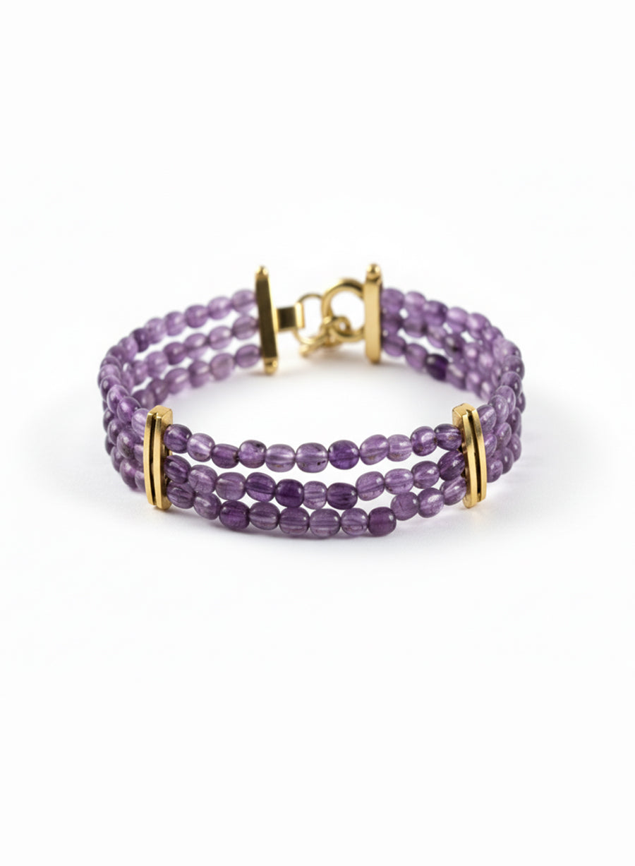 E’ realizzato in modo artigianale con grande attenzione ai dettagli. I fili di ametista hanno un colore intenso e brillante.