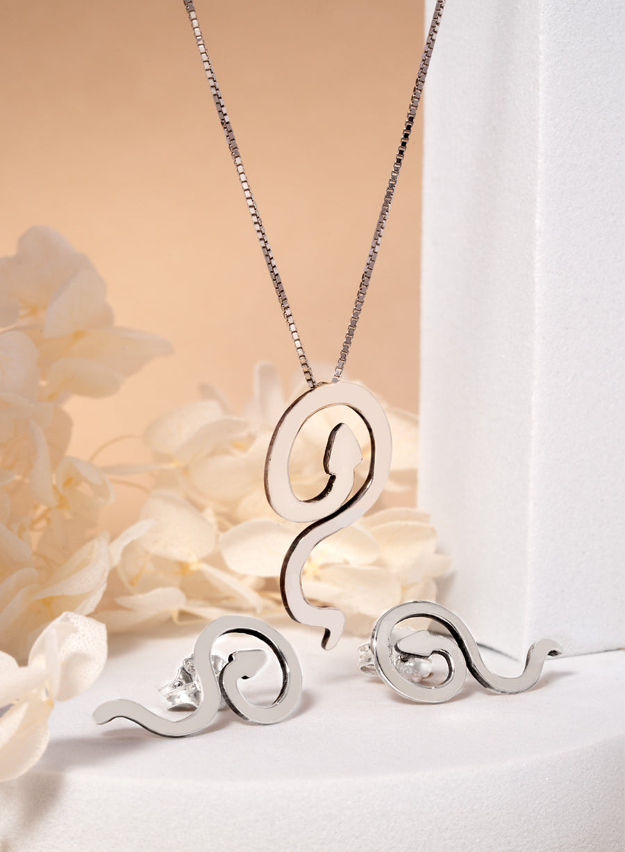 Il design sinuoso evoca il fascino eterno del serpente, simbolo ancestrale di saggezza, guarigione e rinascita.